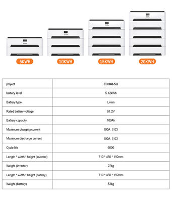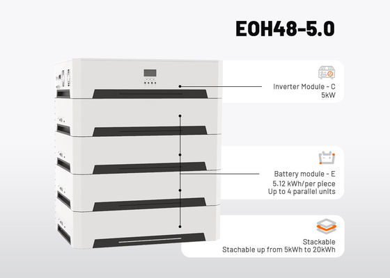 Το σύστημα αυτό διαθέτει καθαρό μετατροπέα κυμάτων σινού 5KW με ενσωματωμένο ελεγκτή ηλιακής φόρτισης MPPT υψηλής απόδοσης, σε συνδυασμό με μπαταρίες LiFePO4 υπερ-μακροχρόνιας ζωής (5,12KWh ανά πακέτο).Το σύστημα υποστηρίζει τη συσσώρευση έως 4 πακέτων μπαταριών για την επίτευξη συνολικής χωρητικότητας μπαταρίας 20KWh, παρέχοντας σταθερή παροχή ενέργειας για όλο το σπίτι σας.