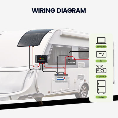 Αυτό το κιτ ηλιακού πάνελ 120w για rv έχει σχεδιαστεί για να αντέχει σε διάφορες εξωτερικές συνθήκες χάρη στην βαθμολογία αντοχής στο νερό IP67 του ηλιακού πάνελ, διασφαλίζοντας ότι παραμένει πλήρως λειτουργικό ακόμη και σε δύσκολες καιρικές συνθήκες. Το κιτ περιλαμβάνει έναν έξυπνο ελεγκτή φόρτισης IP65, ο οποίος βελτιστοποιεί τη μεγιστοποίηση της διάρκειας ζωής και της απόδοσης της μπαταρίας. Η τάση εξόδου 12V DC το καθιστά συμβατό με ένα ευρύ φάσμα μπαταριών, συμπεριλαμβανομένων των τύπων 12V AGM, Gel, Wet, Calcium και LiFePO4 Lithium, δίνοντας στους χρήστες ευελιξία ανάλογα με τις προτιμήσεις τους για αποθήκευση ενέργειας.