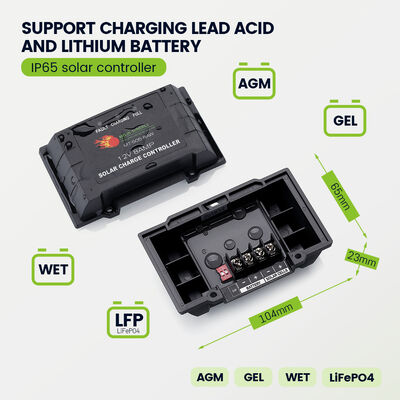 Ένα από τα ξεχωριστά χαρακτηριστικά αυτού του κιτ ηλιακού πάνελ RV είναι η συμπερίληψη ενός πολύ μικρού μεγέθους αδιάβροχου ελεγκτή φόρτισης ηλιακού με βαθμολογία IP65. Ο έξυπνος συμπαγής ελεγκτής φόρτισης ηλιακού εξοπλισμένος με επαγγελματική τεχνολογία φόρτισης τόσο για μπαταρίες μολύβδου οξέος (AGM, GEL, WET) όσο και για μπαταρίες λιθίου LiFePO4. Η βαθμολογία IP65 εγγυάται ότι ο ελεγκτής φόρτισης καθιστά κατάλληλο για εξωτερική χρήση και παρέχει ηρεμία σε διάφορες καιρικές συνθήκες.